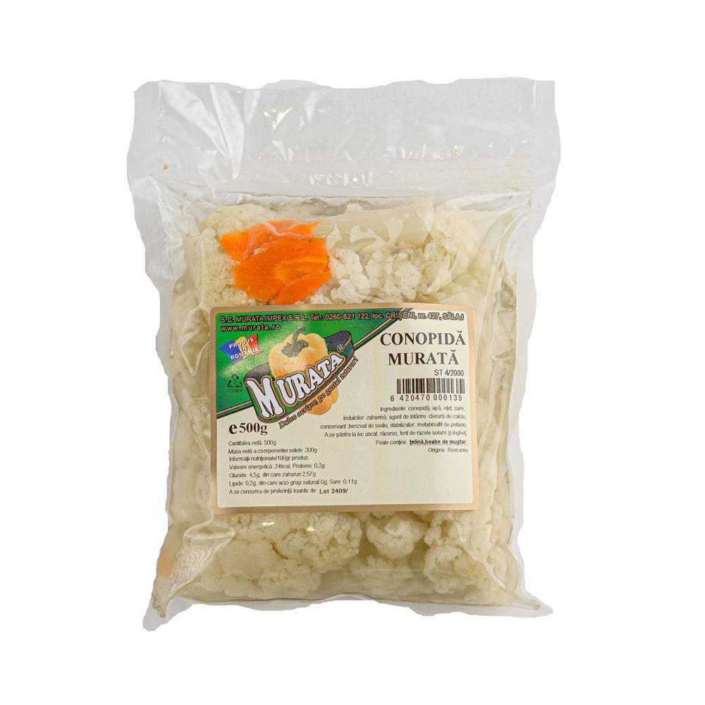 Îmi pare rău dar conopida asta nu este murata ci plină de zahăr ( prea dulce), am aruncat-o direct la cos!