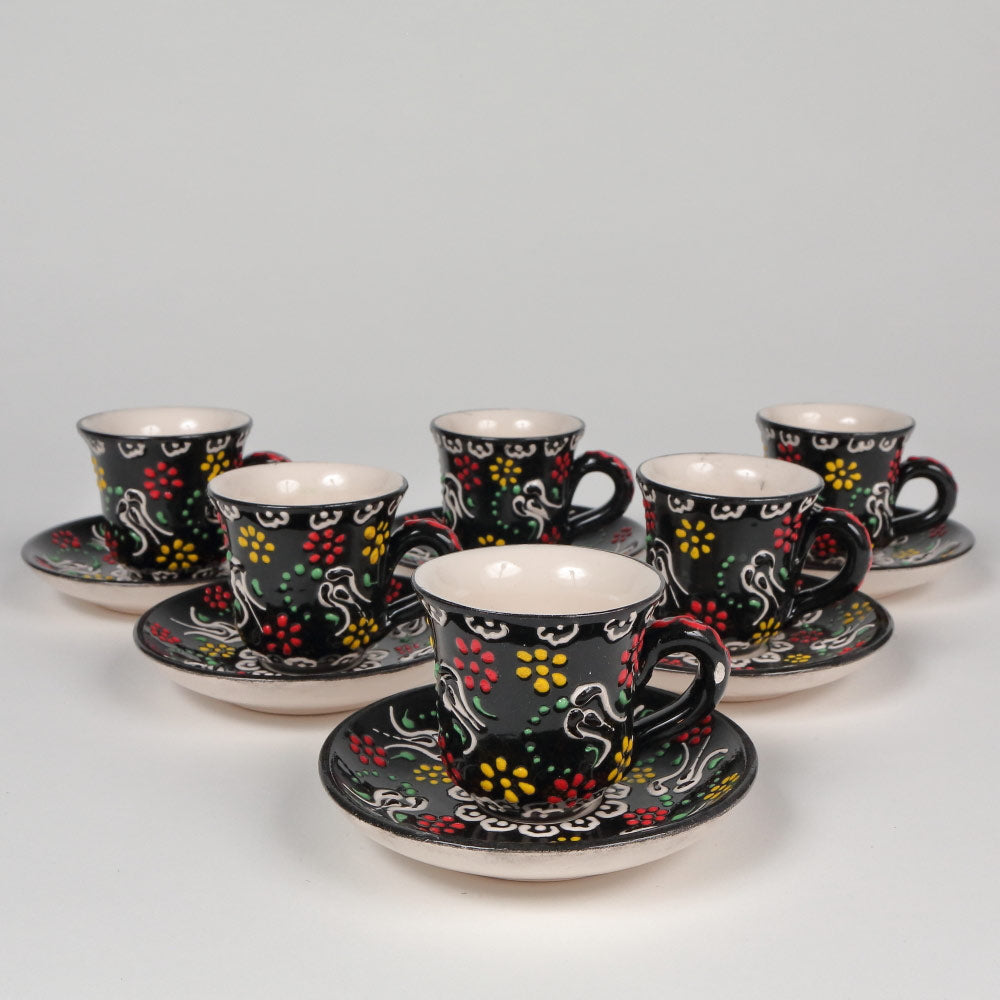 Set cafea negru din ceramica - pictat manual